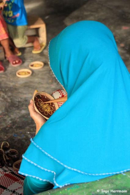 Frau bei feiner Malerarbeit, Töpferdorf Banyumulek, Lombok